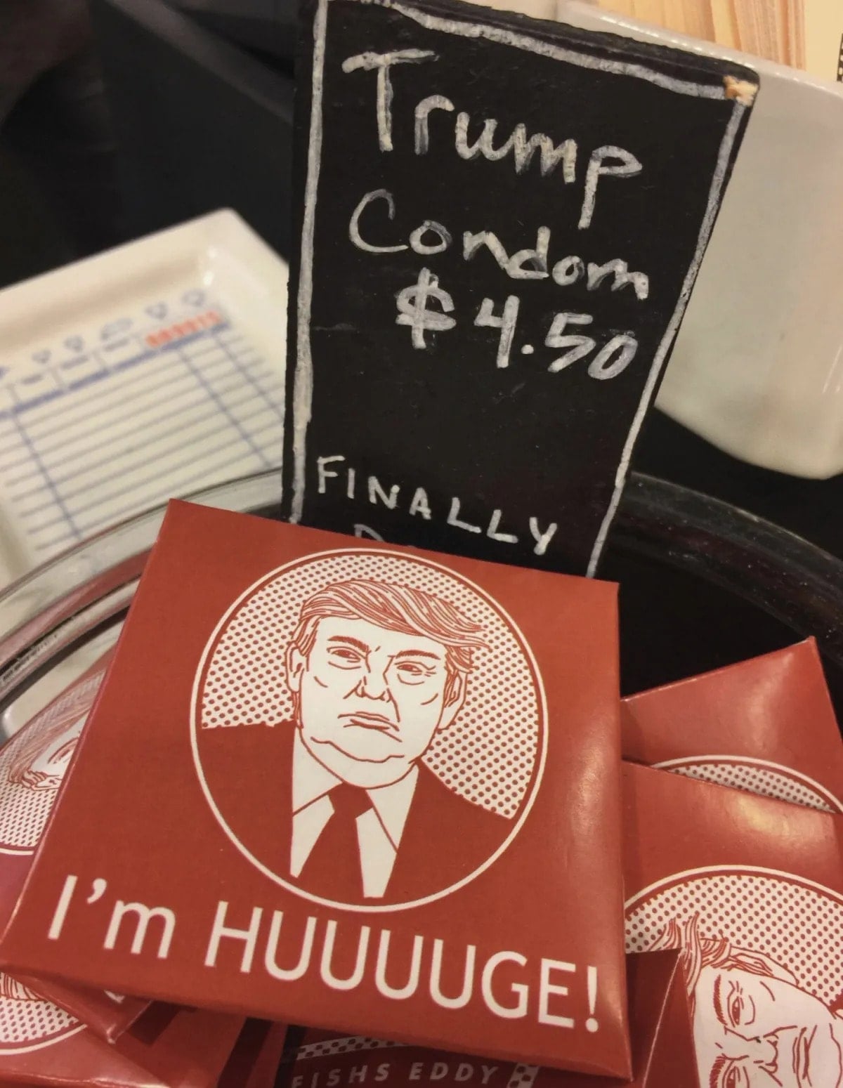 Komite tarafından servis edilen görseller arasında, üzerinde Donald Trump’ın karikatürize yüz çiziminin yer aldığı ve 4,5 dolar etiket fiyatı bulunan prezervatifler de yer aldı. Bu kare, sosyal medyada geniş yankı uyandırdı.