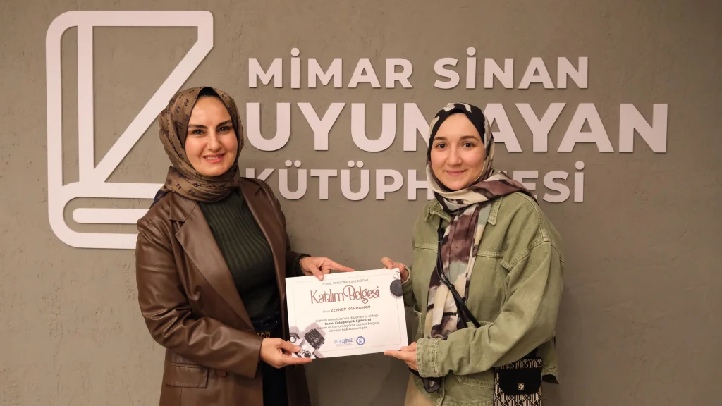 Sergi açılışının ardından Temel Fotoğrafçılık Kursu’nu başarıyla tamamlayan kursiyerlere sertifikaları takdim edildi. Sertifika töreni, katılımcılar için hem emeklerinin karşılığını aldıkları hem de yeni bir başlangıcın kapısını araladıkları anlamlı bir an oldu.